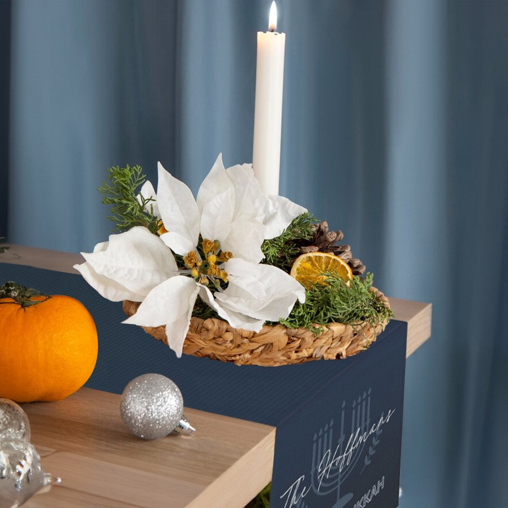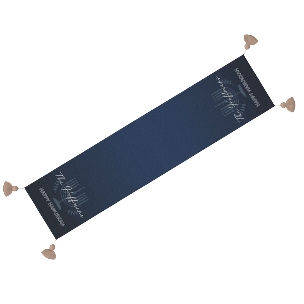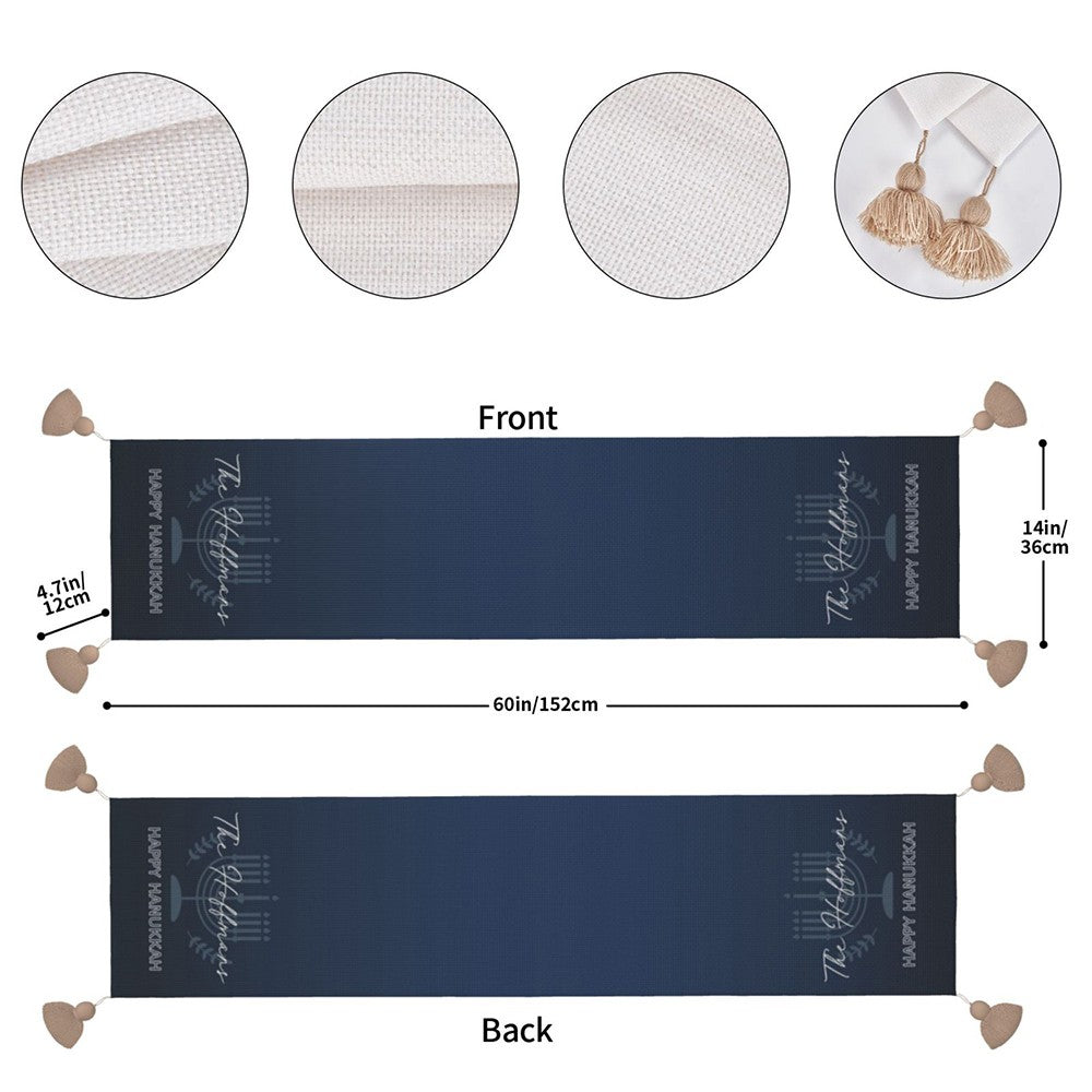 Personalized Name Menorah Spirit Tablecloth, Waterproof Table Runner with Tassels, Table Accessory, Hanukkah/Jewish Gift for Mom/Family/Best Friends