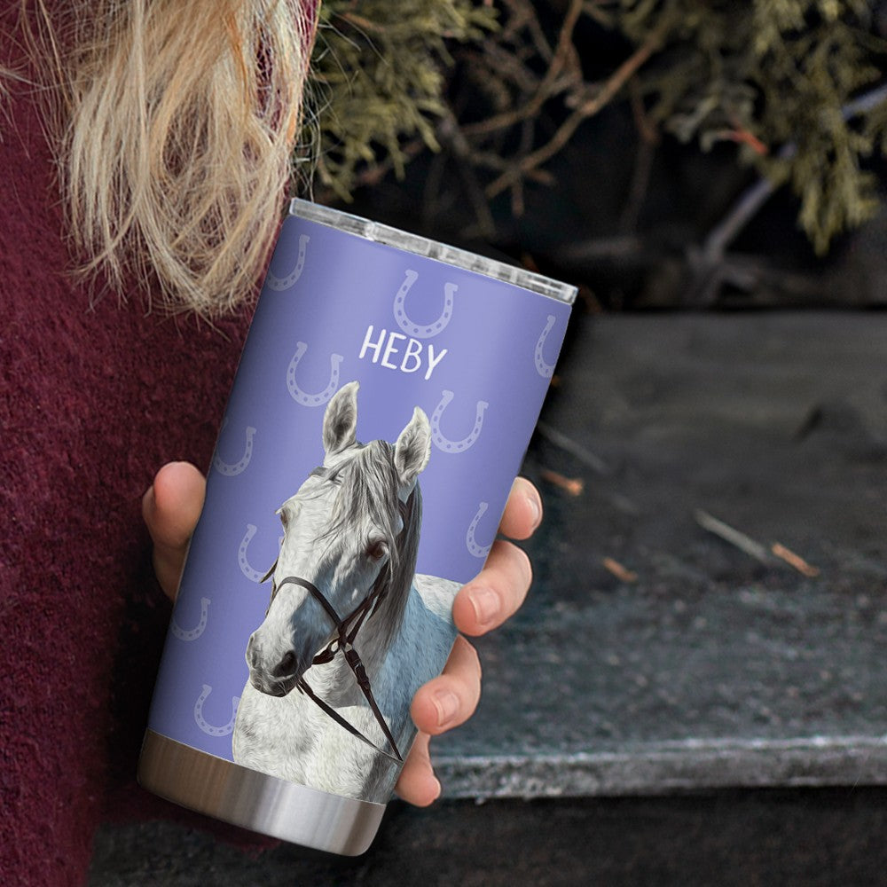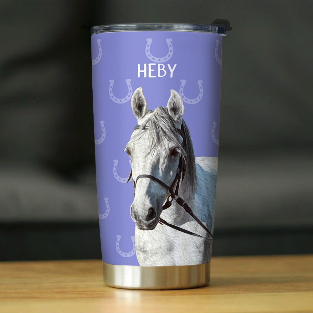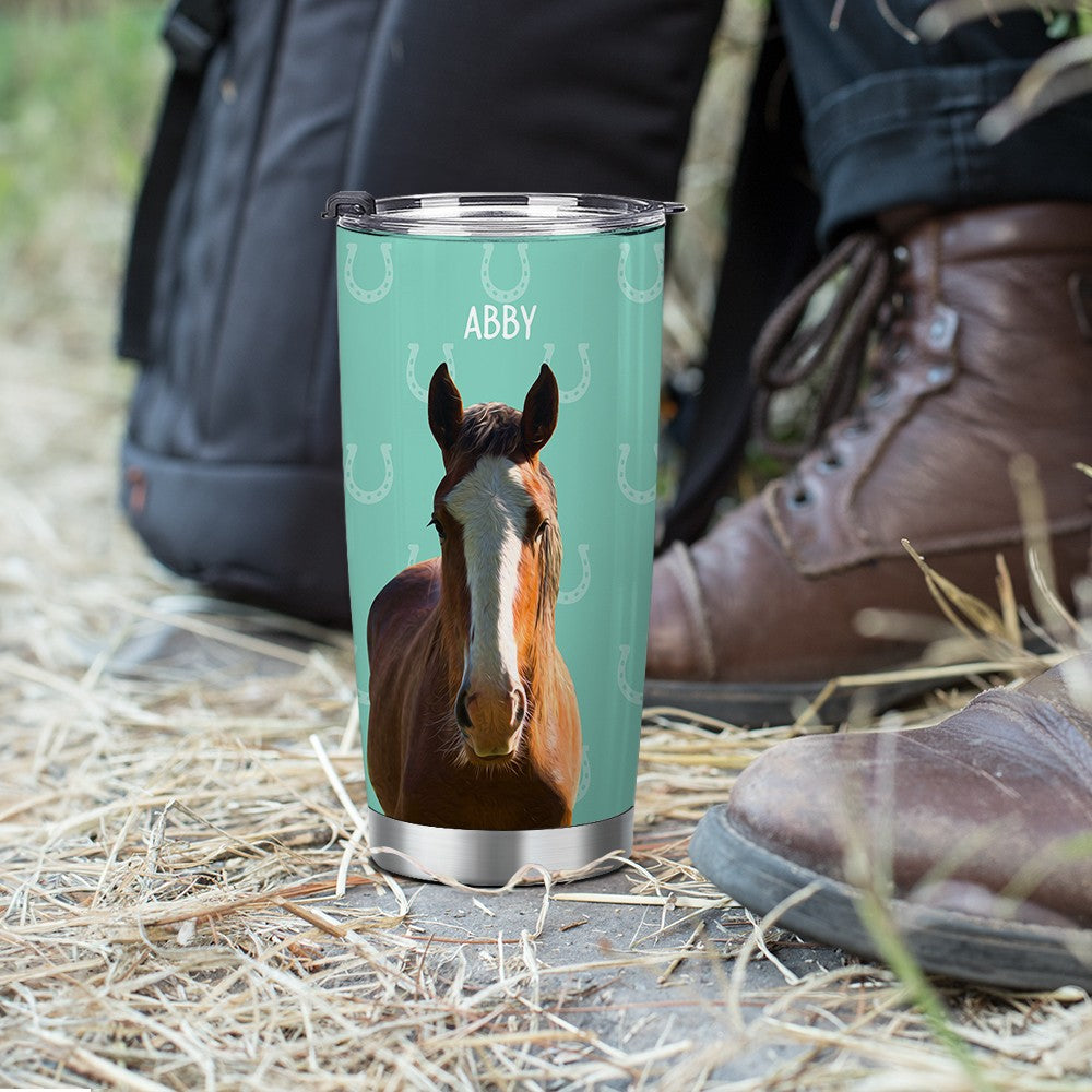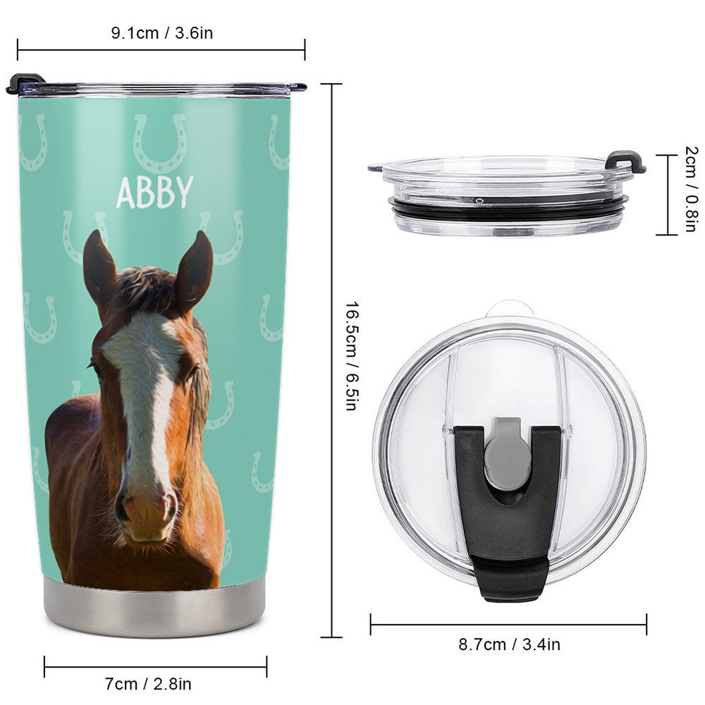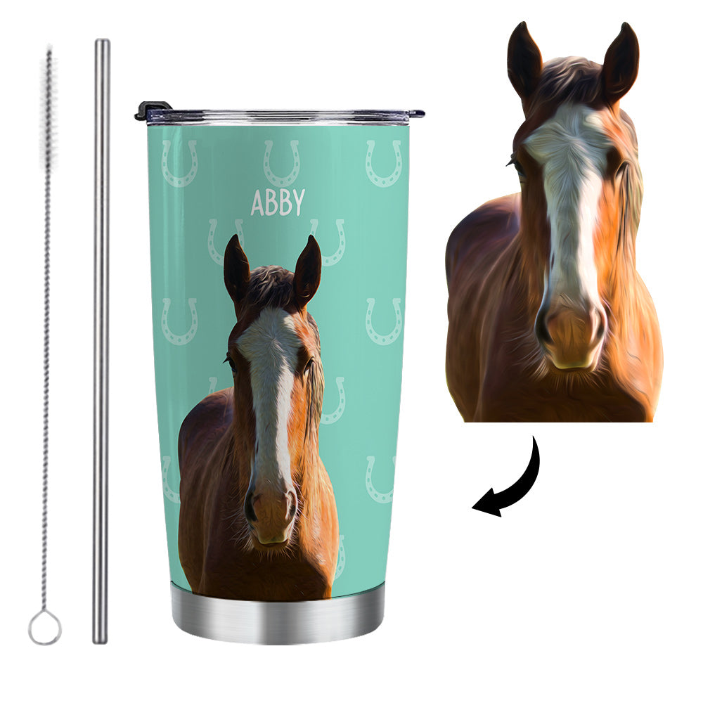 Personalized Name & Photo Horse Tumbler, Stainless Steel 20oz Horse Travel Mug with Straw, Gift for Horseback Rider/Horse Lover/Equestrian Enthusiast