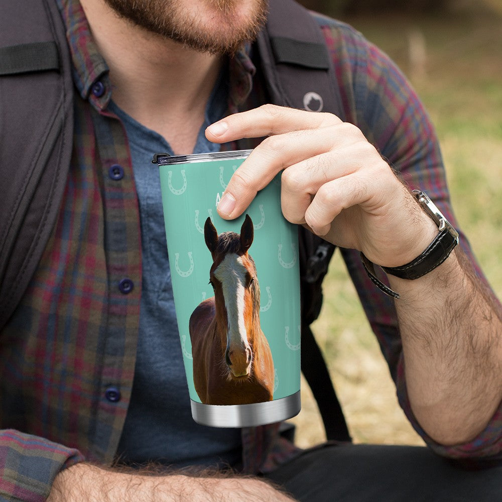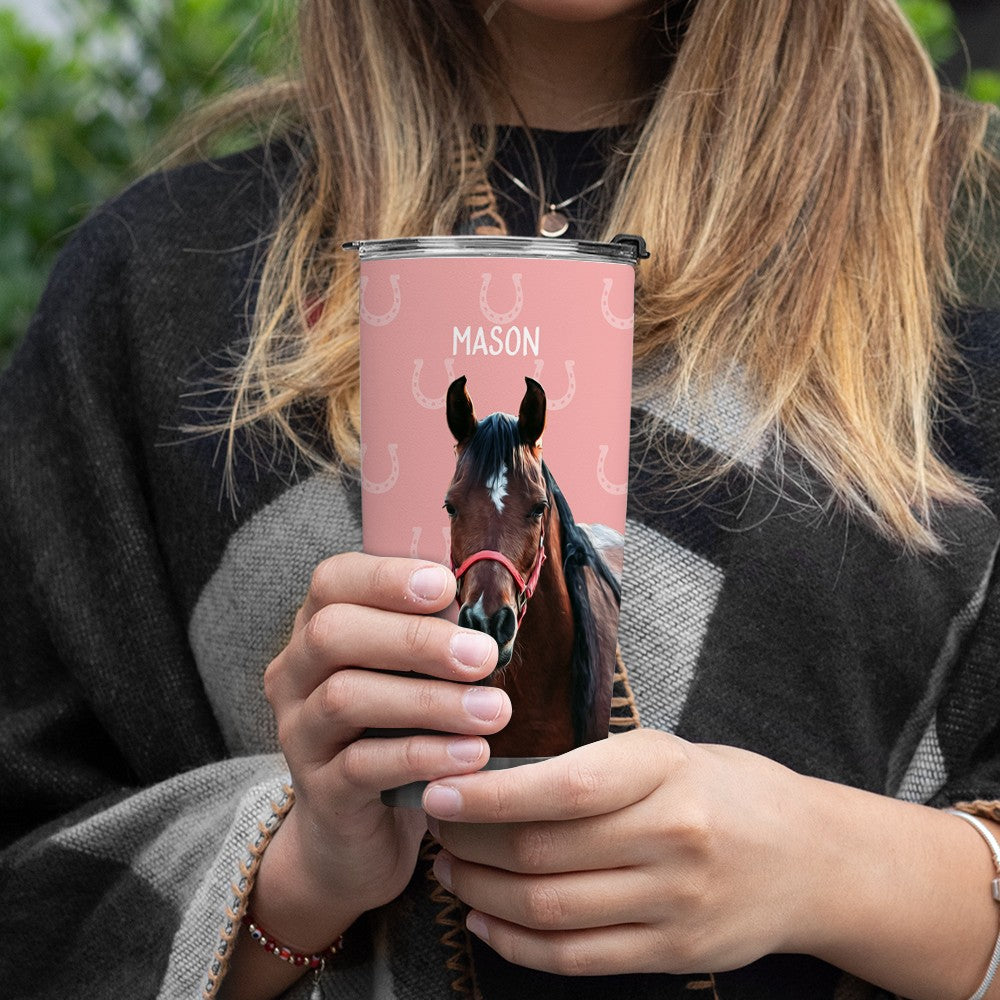 Personalization - Customize this stainless steel tumbler with the name and photo of your horse, adding a unique touch to your drinkware.