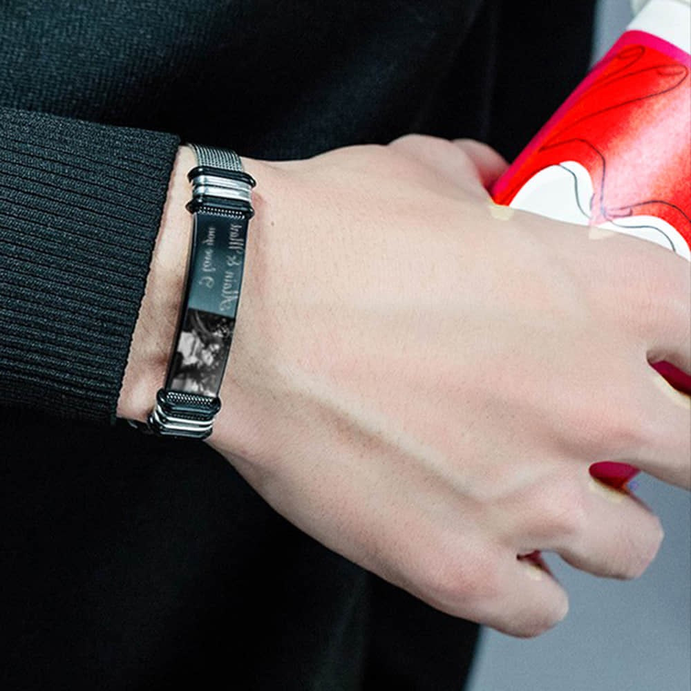 Customization - This men's bracelet can be customized with your cherished moment with your loved one by uploading photo and personalized with special message to tell the recipient how much he/she means to you. Popular texts include name, date(text 1) and sentimental words(text 2), etc.