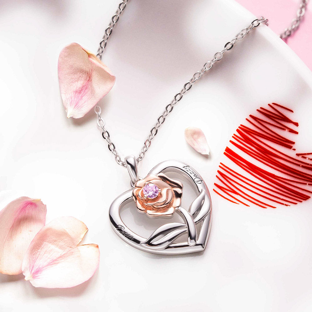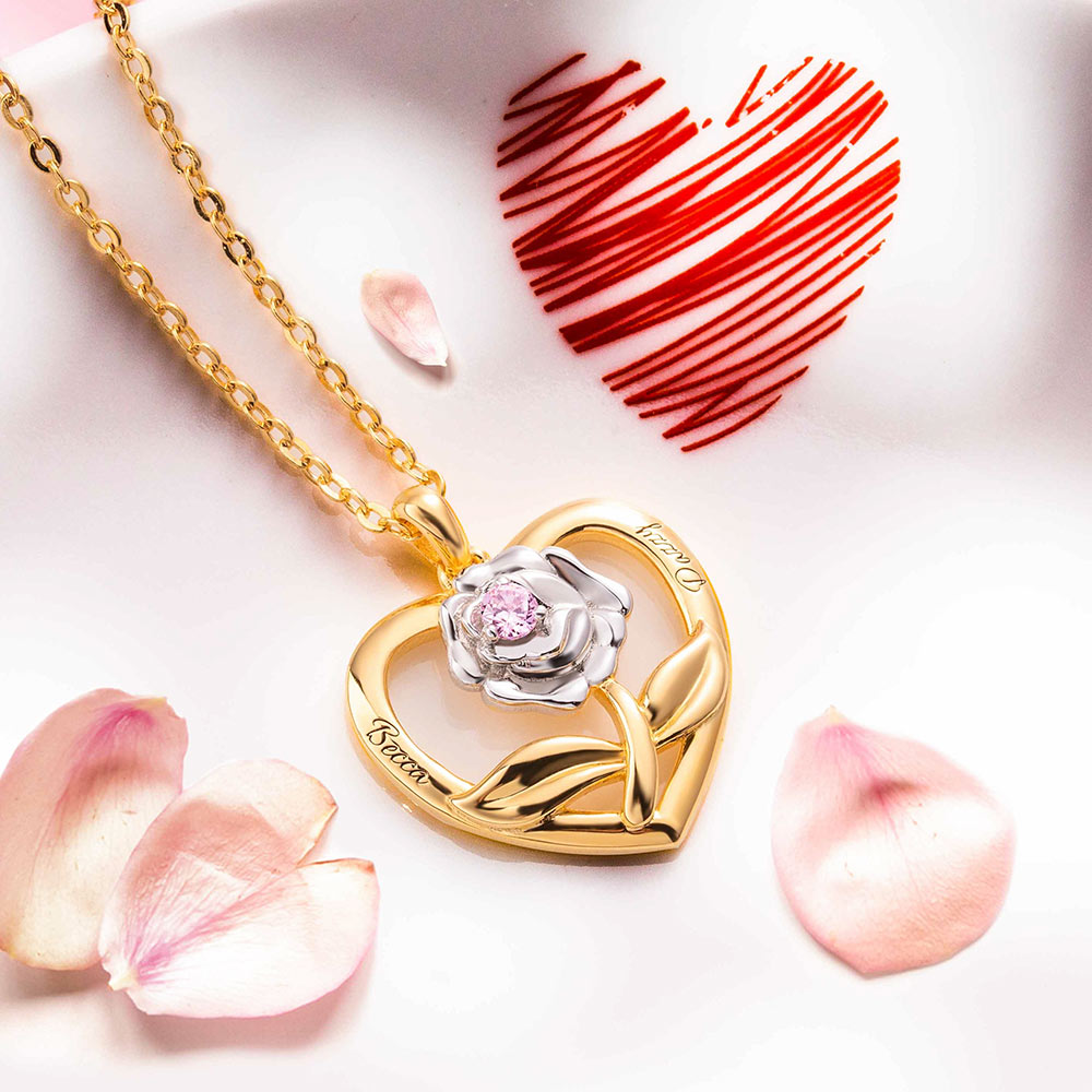 Customized Jewelry: Customize the rose heart necklace with your significant names and a birthstone of your special someone to tell her that how much you care about her. This love necklace will always catch people's eyes and the recipient will be touched by the romantic design.