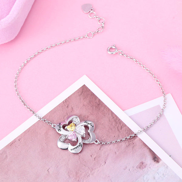 Three heart-shaped birthstone and elegant engraving of your choices, this delicate bracelet would make you show your wrist with more confidence. Almost suitable for kinds of occasions with its simple and classic style. Personalized it for a special reminder to yourself or just send it as a message of your love.