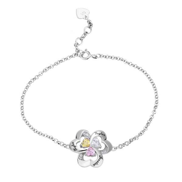 Personalized Three Heart Birthstone Bracelet in Silver