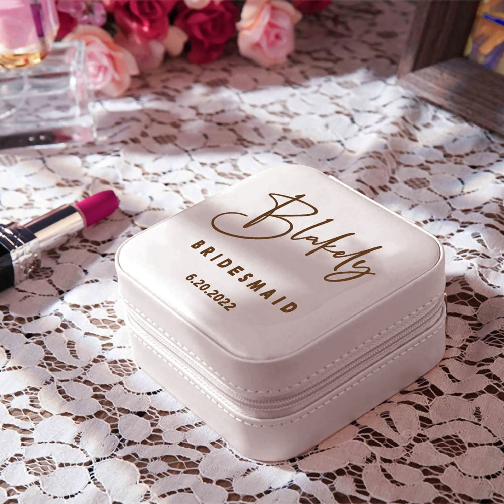 Personalized Travel Jewelry Box, Leather Small Jewelry Organizer, Ring Case for Wedding Gifts, Bridesmaid Proposal Gifts