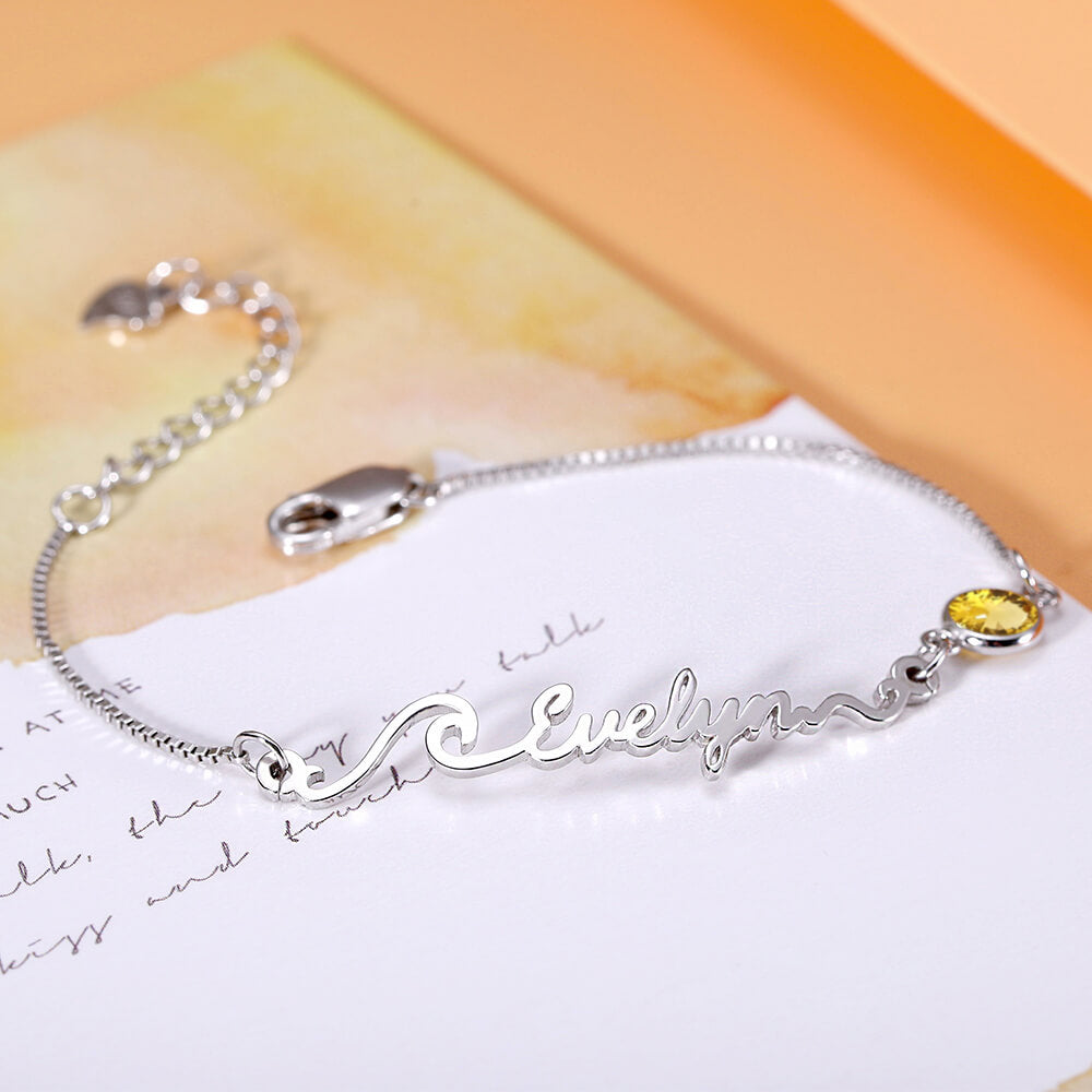 Your name is traveling on the wave -- Inspired by the charm of the ocean, suits for both ankle and wrist, this dainty name jewelry with beautiful wave sign is such a great addition for your daily look. Also available in adding more shining element by picking a special birthstone.