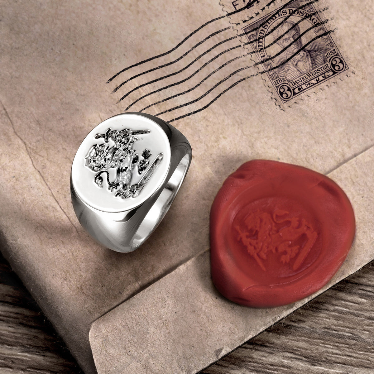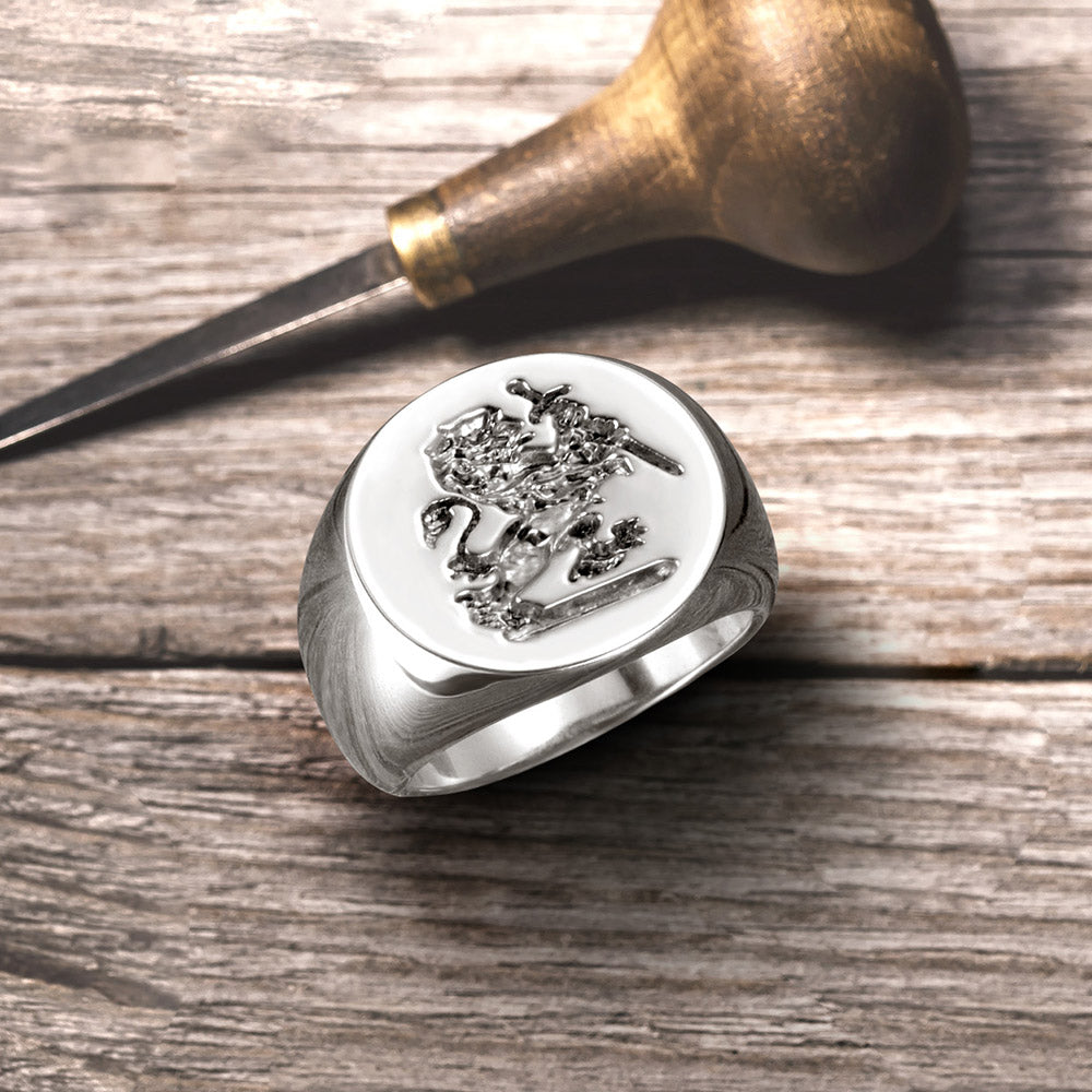 - Personalized 925 sterling silver signet ring engraved with your family crest, coat of arms or any other image that you request.